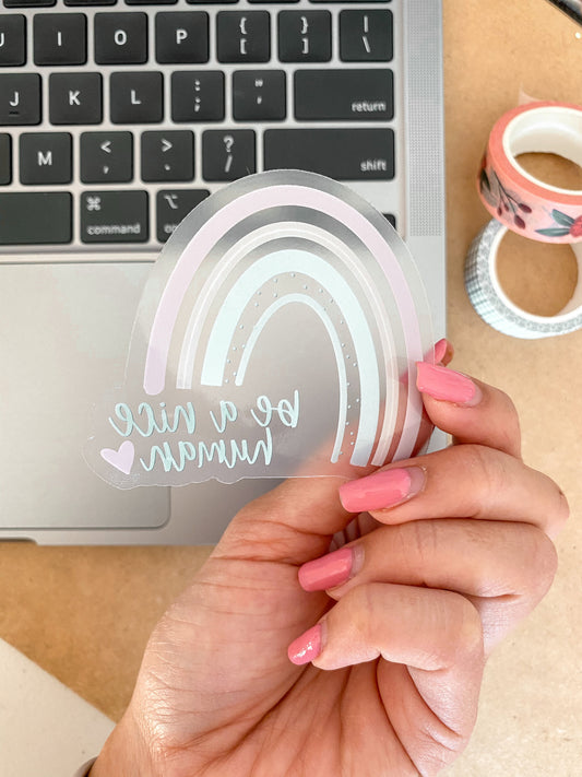 Be A Nice Human Rainbow Sticker Clear